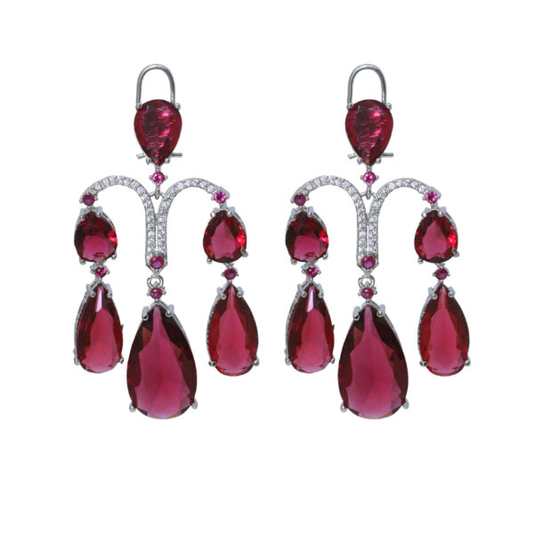 ₹1899Enhance your look with these breathtaking Red multi-drop chandelier earrings, designed to exude elegance and sophistication. Featuring a cascading arrangement of vibrant Red teardrop stones, these earrings create a graceful and eye-catching silhouette.