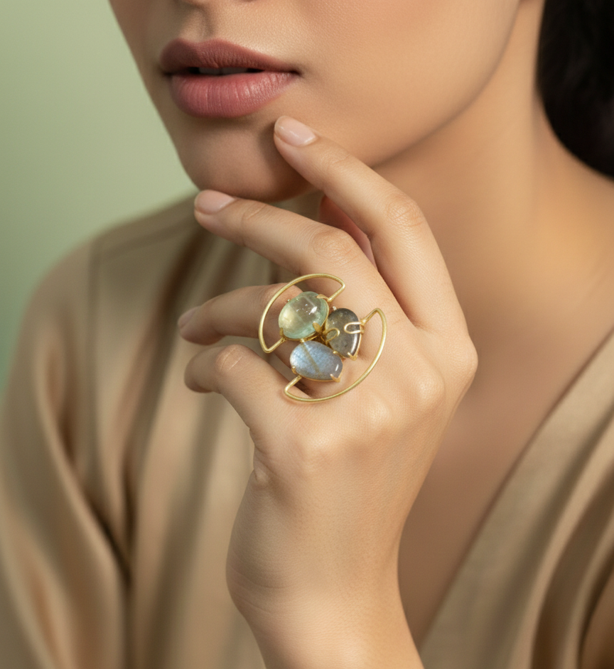 Celebrate nature’s artistry with our handcrafted natural stone rings. Each piece features gems set in delicate gold bands—designed to reflect both heritage and minimal luxury. These rings tell stories of the earth through organic forms and timeless style. Perfect for layering or statement moments, they’re wearable symbols of quiet opulence.