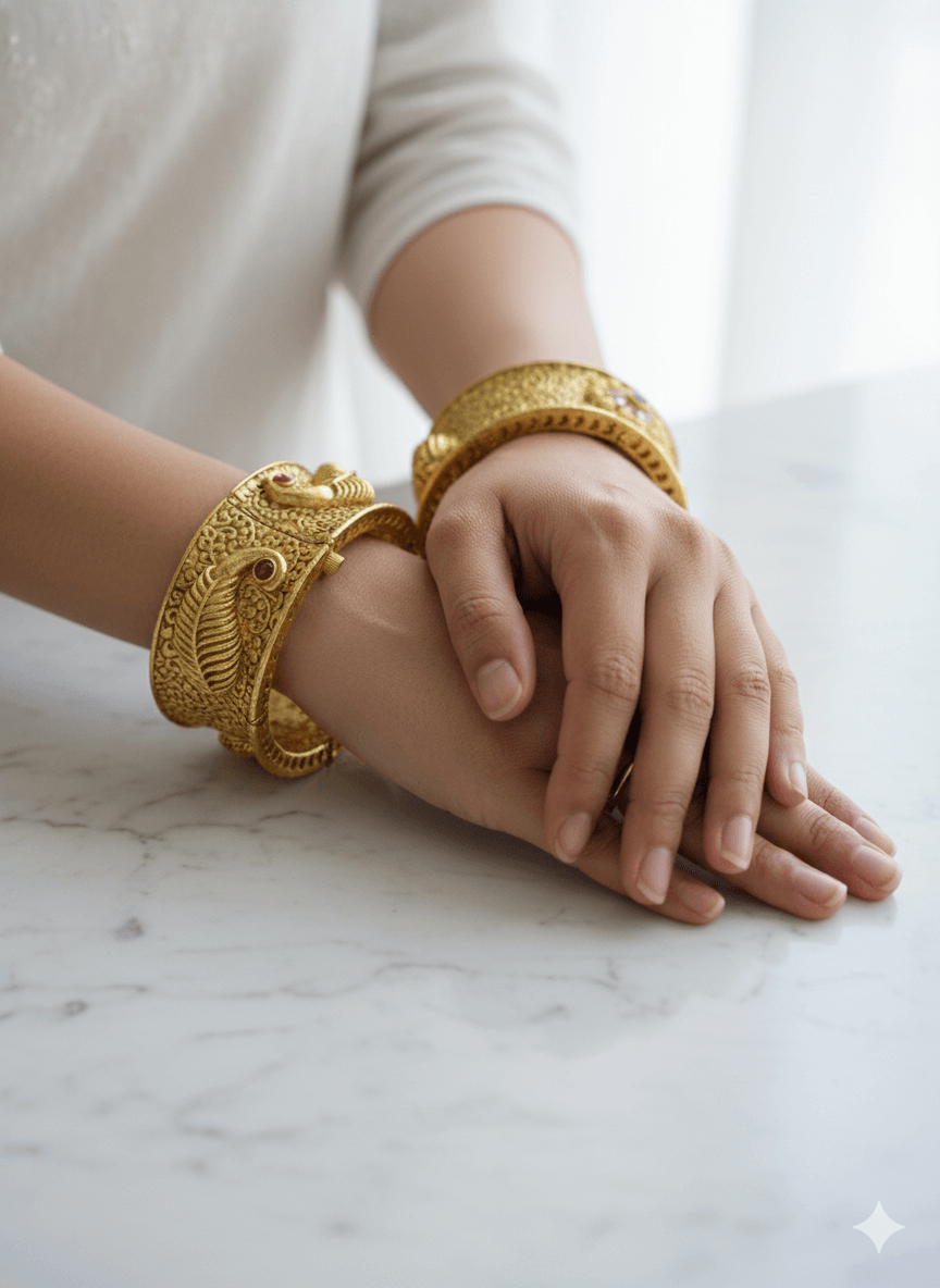 Featuring a pair of gold finish handcrafted openable bangles studded with kundan polki. Perfect wear for festive occasions or wedding ceremonies.