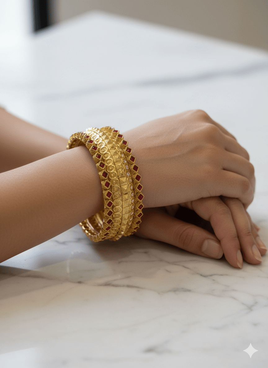 Featuring a pair of gold finish handcrafted openable bangles studded with kundan polki. Perfect wear for festive occasions or wedding ceremonies.