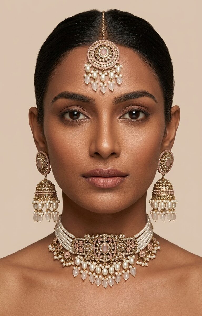 Lightweight and comfortable to wear, this statement set pairs effortlessly with sarees, lehengas, and ethnic gowns, making it an ideal choice for brides, bridesmaids, and festive styling.
