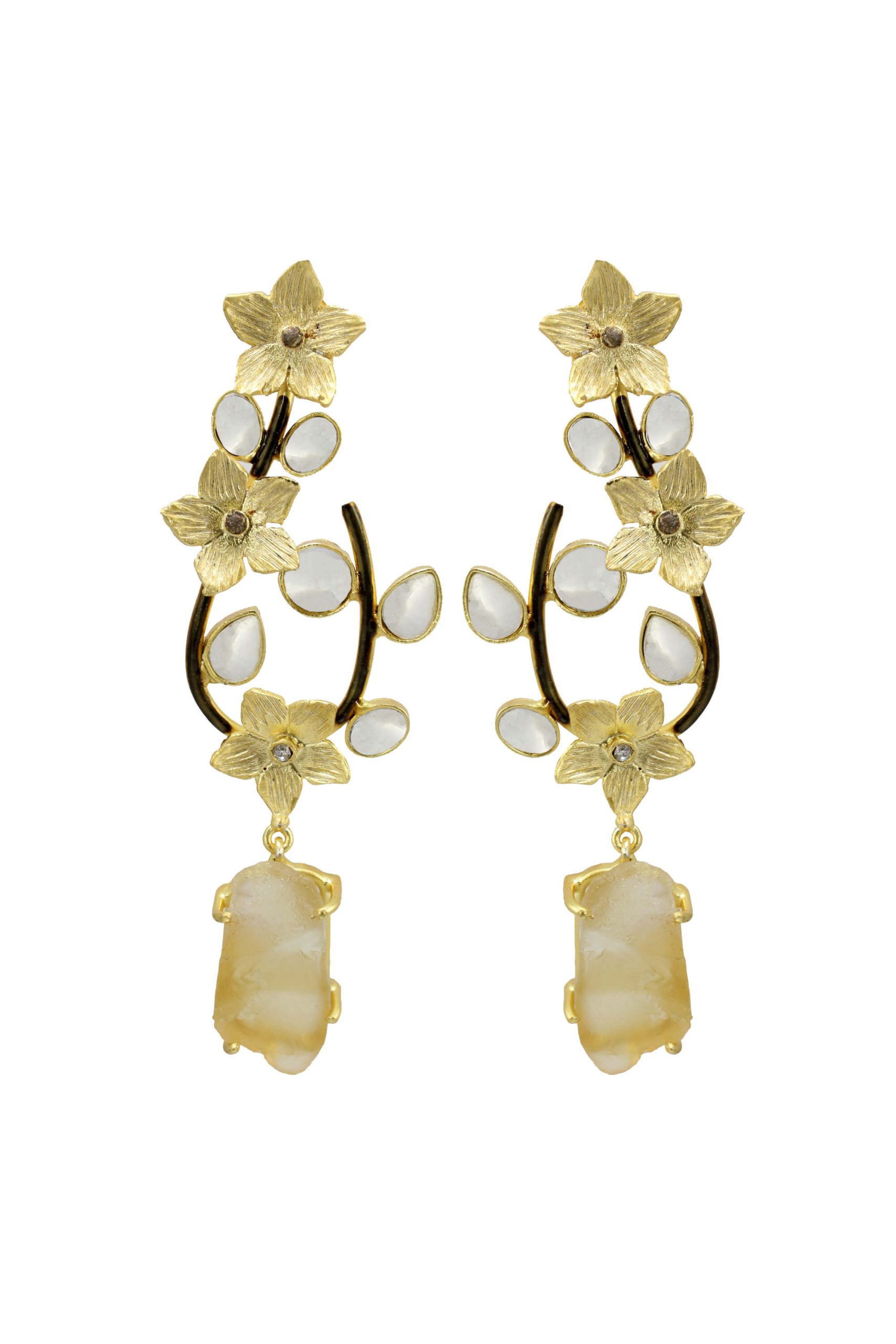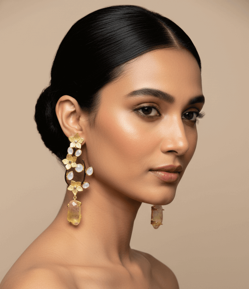 Perfect for weddings, festive occasions, and contemporary styling, these earrings offer a refined balance of nature-inspired aesthetics and luxurious craftsmanship.