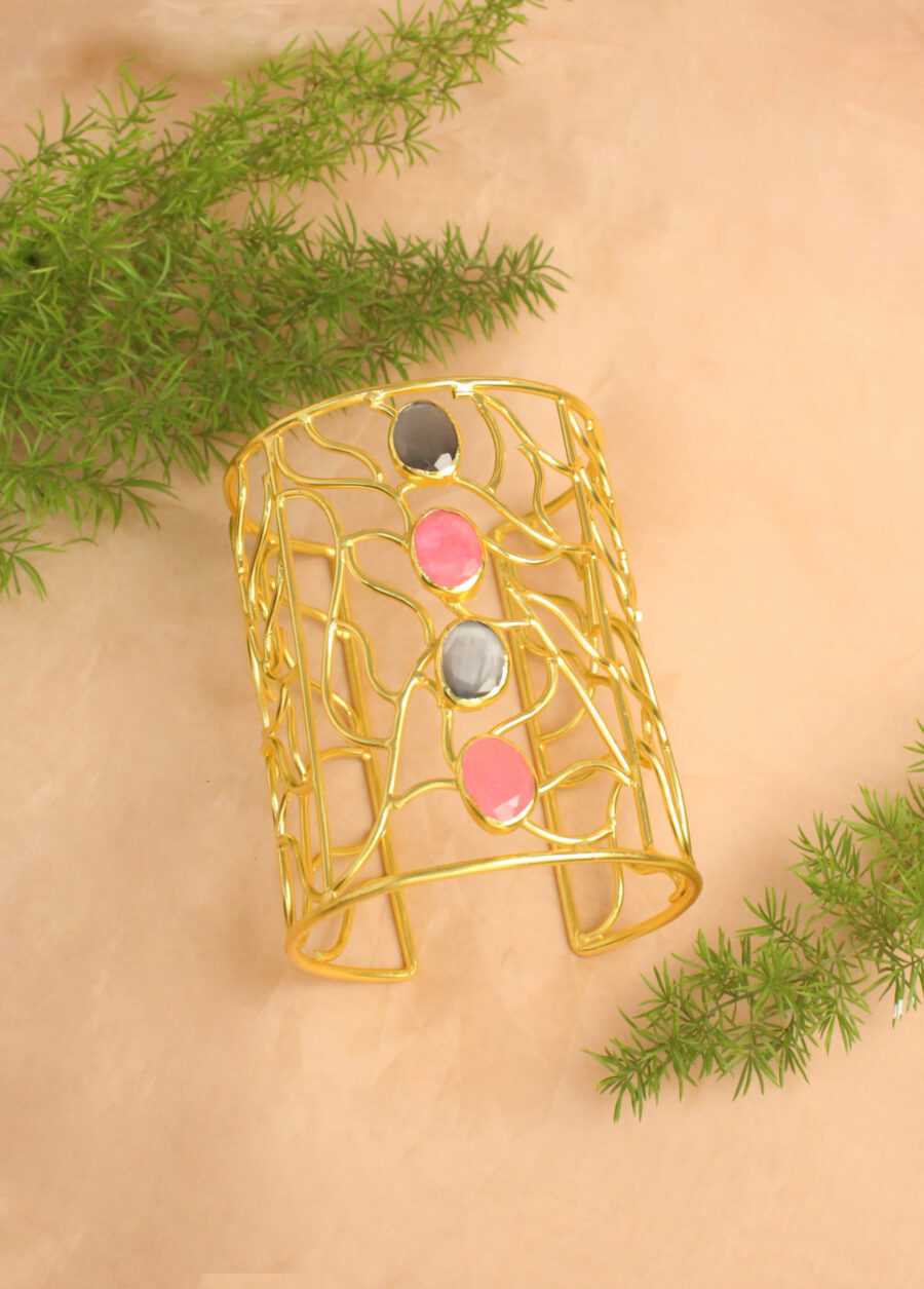 Add a bold touch of glamour to your look with this stunning gold-polish handcuff. Designed with a sleek finish and encrusted with shimmering stones, this piece effortlessly blends modern edge with classic elegance. Whether worn solo or stacked, it’s perfect for festive occasions, evening wear, or statement styling.