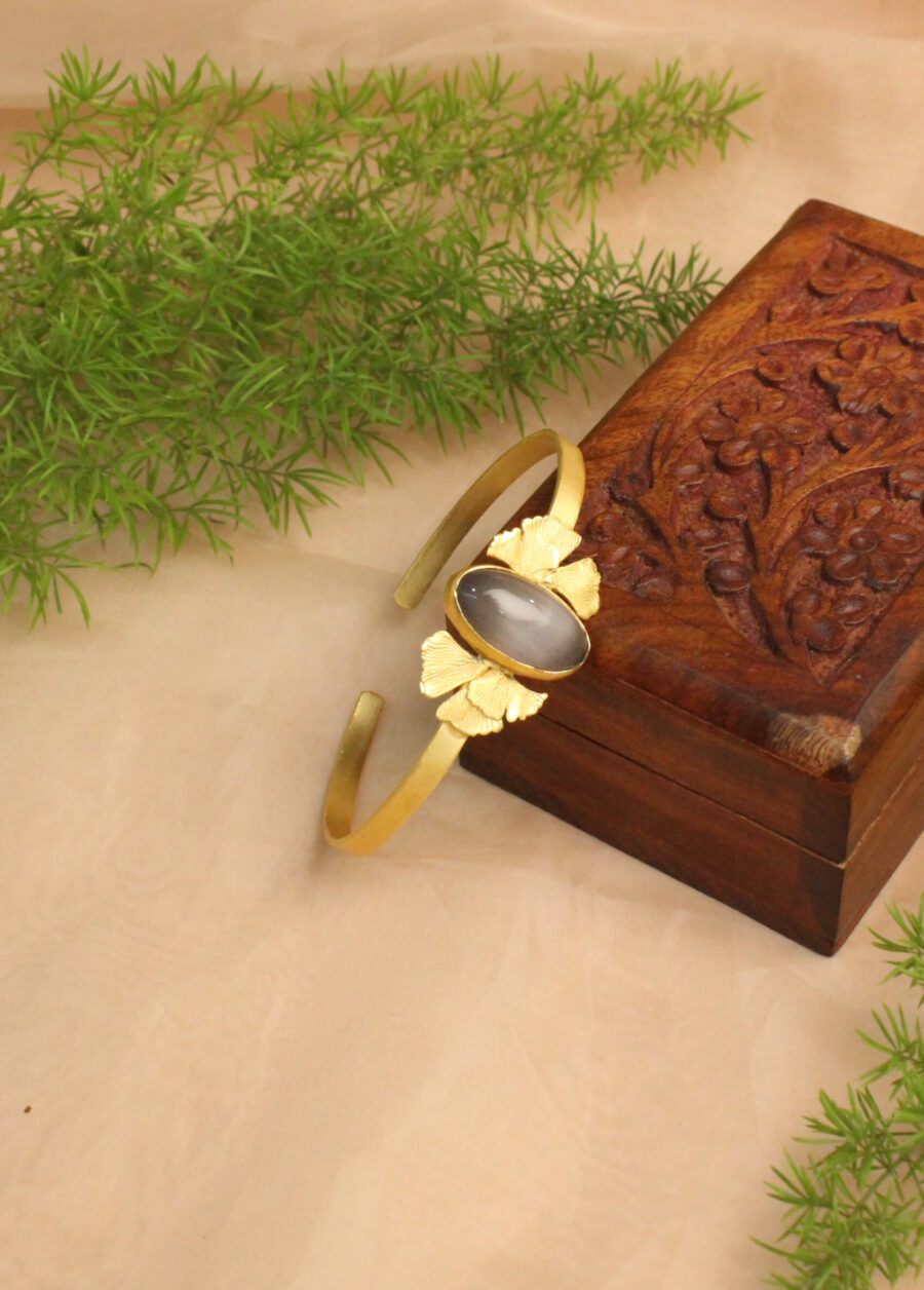 Add a bold touch of glamour to your look with this stunning gold-polish bracelet. Designed with a sleek finish and encrusted with shimmering stones, this piece effortlessly blends modern edge with classic elegance. Whether worn solo or stacked, it’s perfect for festive occasions, evening wear, or statement styling.