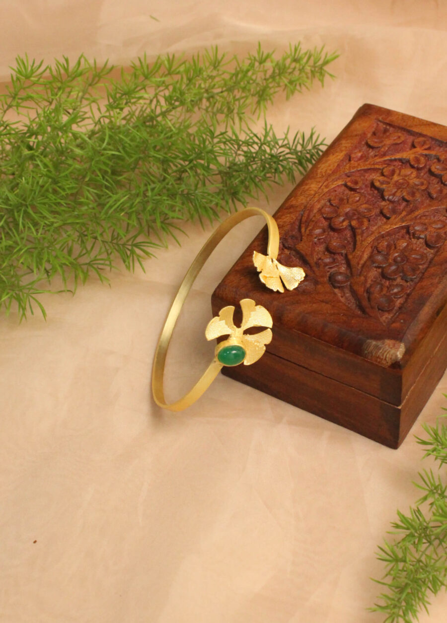 Add a bold touch of glamour to your look with this stunning gold-polish bracelet. Designed with a sleek finish and encrusted with shimmering stones, this piece effortlessly blends modern edge with classic elegance. Whether worn solo or stacked, it’s perfect for festive occasions, evening wear, or statement styling.