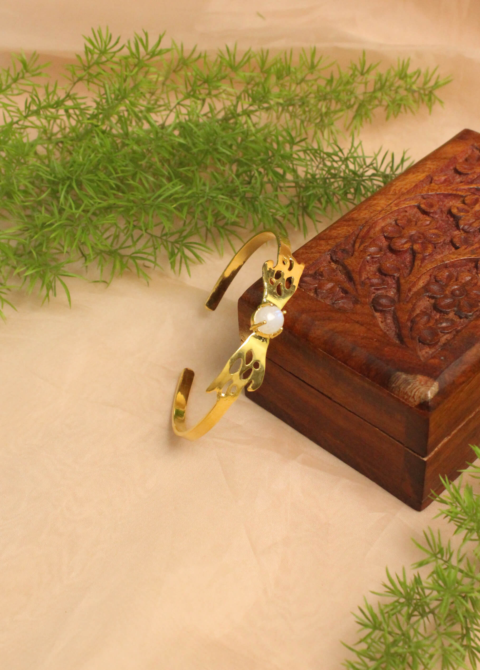 Add a bold touch of glamour to your look with this stunning gold-polish bracelet. Designed with a sleek finish and encrusted with shimmering stones, this piece effortlessly blends modern edge with classic elegance. Whether worn solo or stacked, it’s perfect for festive occasions, evening wear, or statement styling.