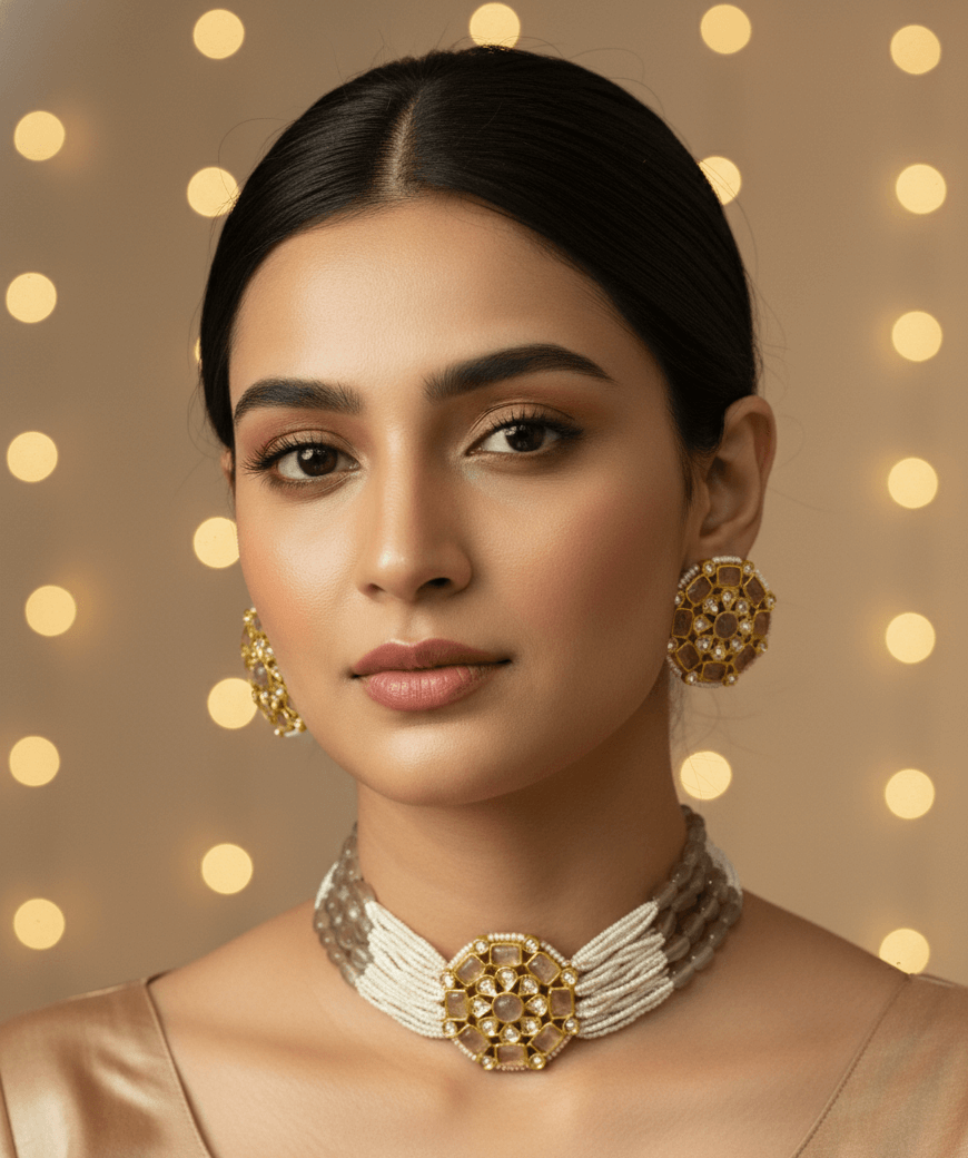 Discover the timeless allure of Beaded choker set. Each piece is meticulously crafted to highlight the unique shape and sparkling facets of these exquisite gems. Perfect for those who appreciate the pure elegance of nature, these set with earrings are a stunning statement of sophistication and style. Perfect for any occasion, from casual outings to formal events, these set offer a versatile accessory that enhances your look with sophistication and charm.