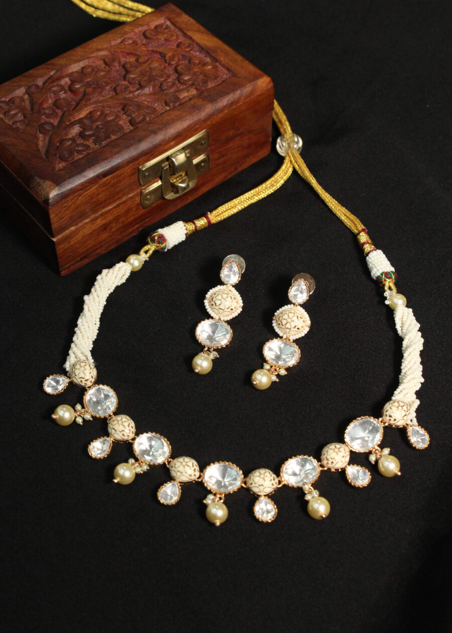 Timeless Treasure: Polki-Studded Gold Finish Necklace Set