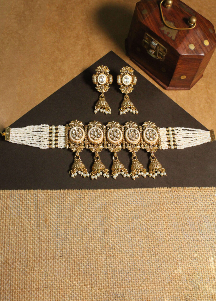 Timeless Treasure: Polki-Studded Gold Finish Necklace Set