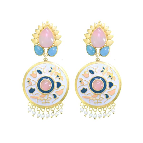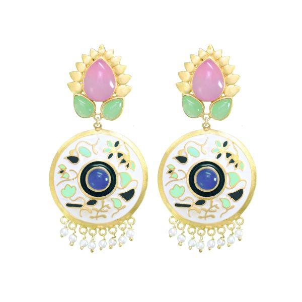 ₹1000The Enamel Edit by Belsis is a curated collection of handcrafted enamel earrings adorned with natural stones. Designed in soft pastel hues, each piece blends artisanal enamel work with timeless elegance—perfect for everyday wear and special occasions.
